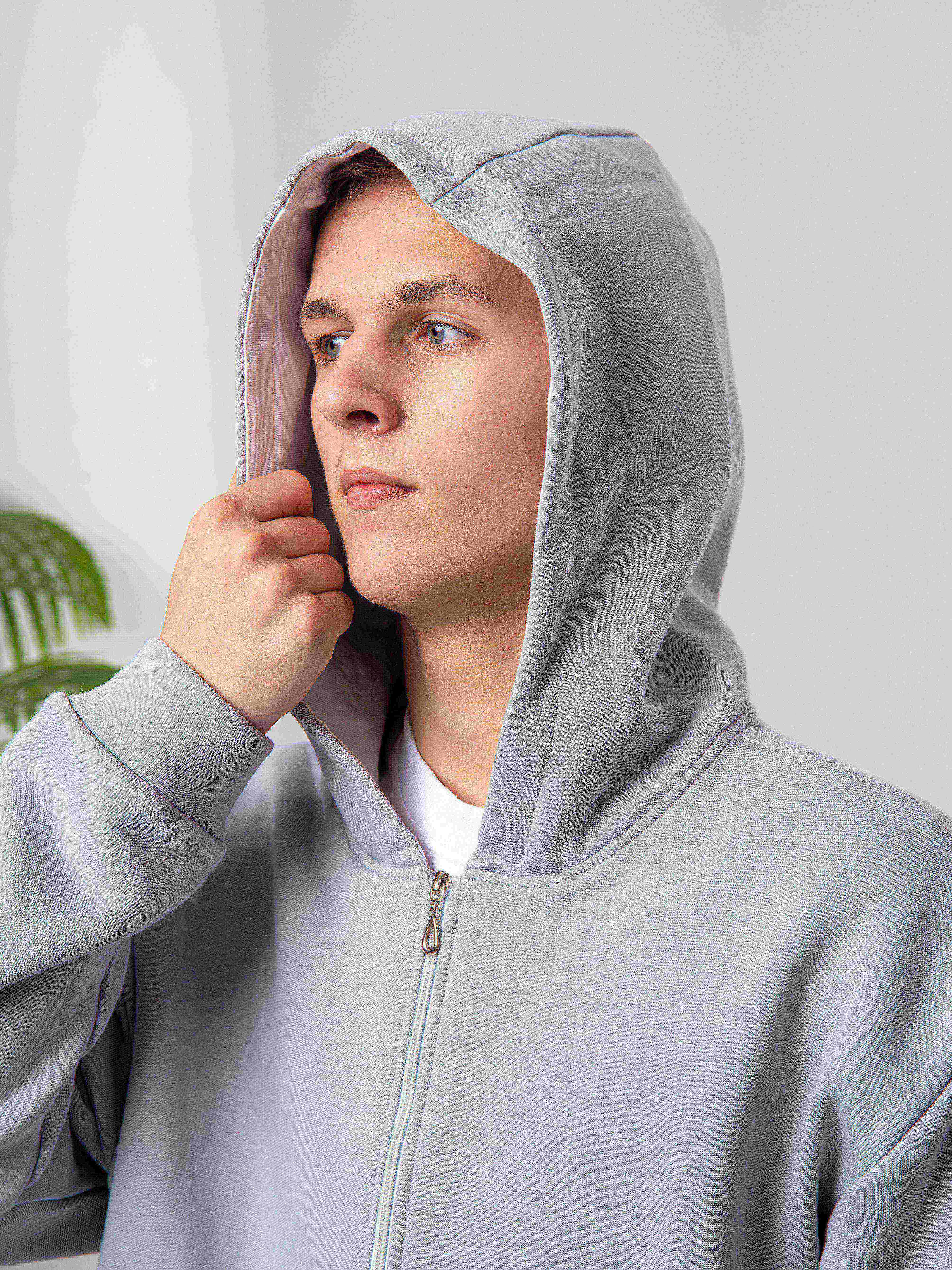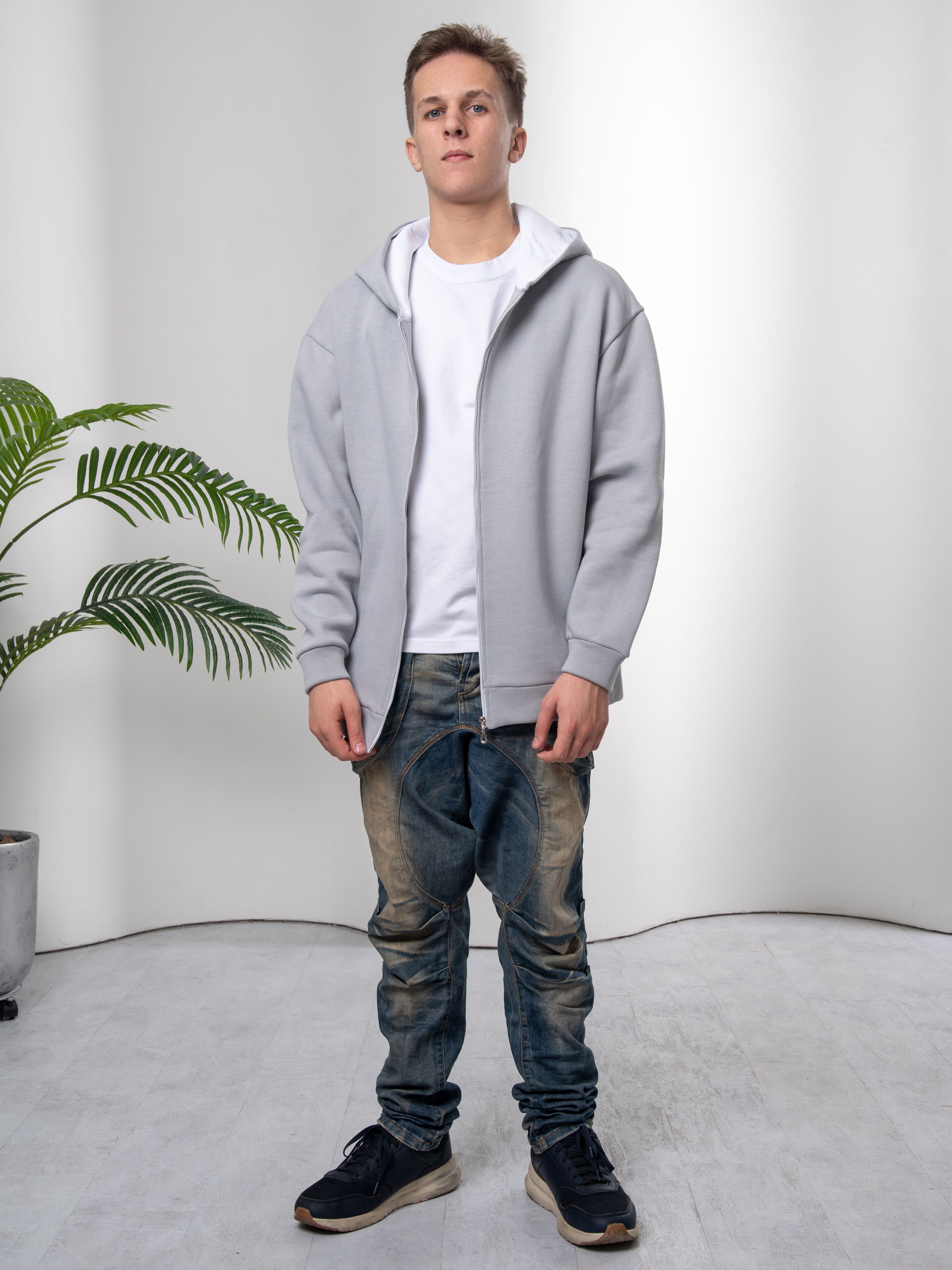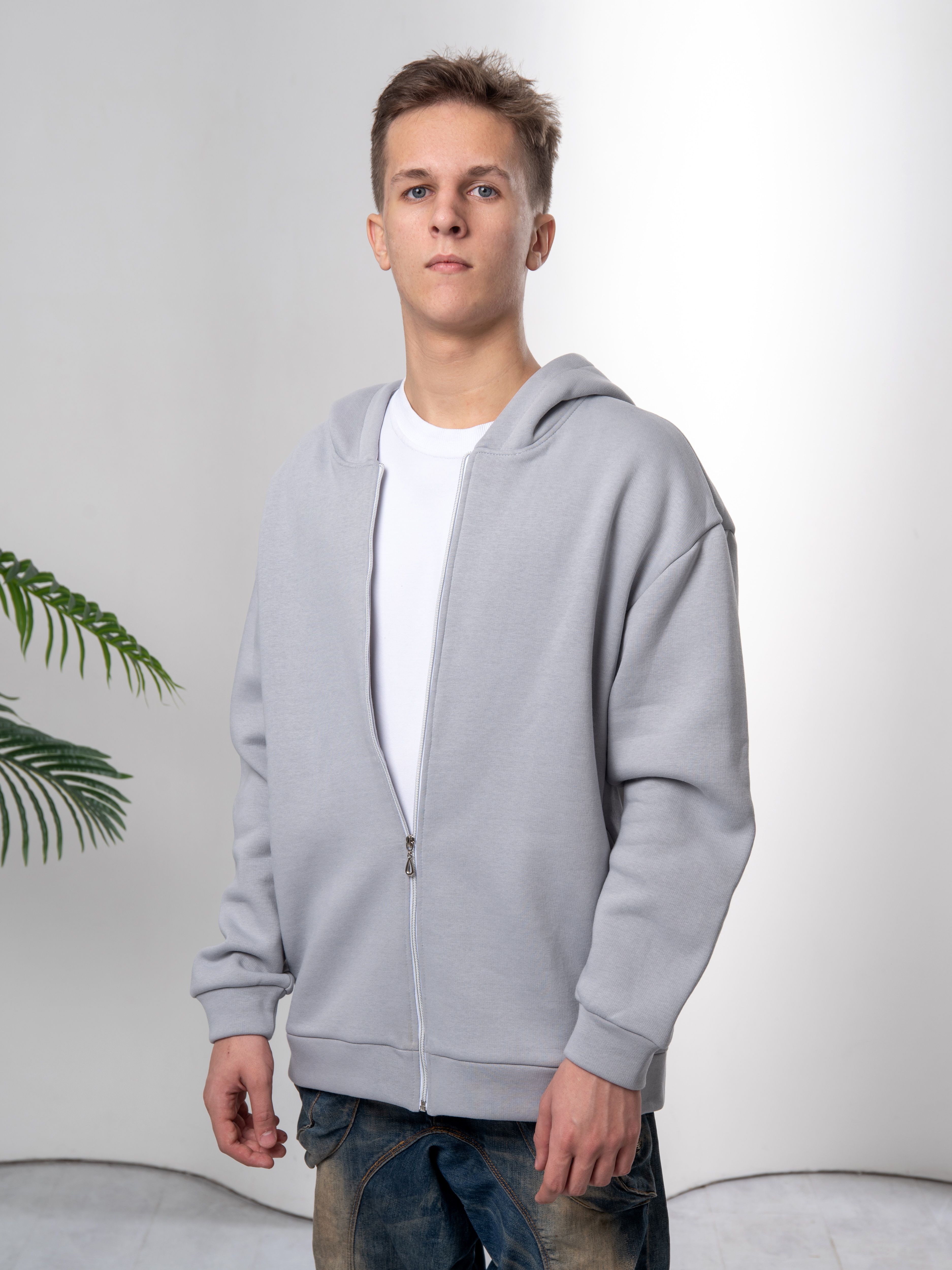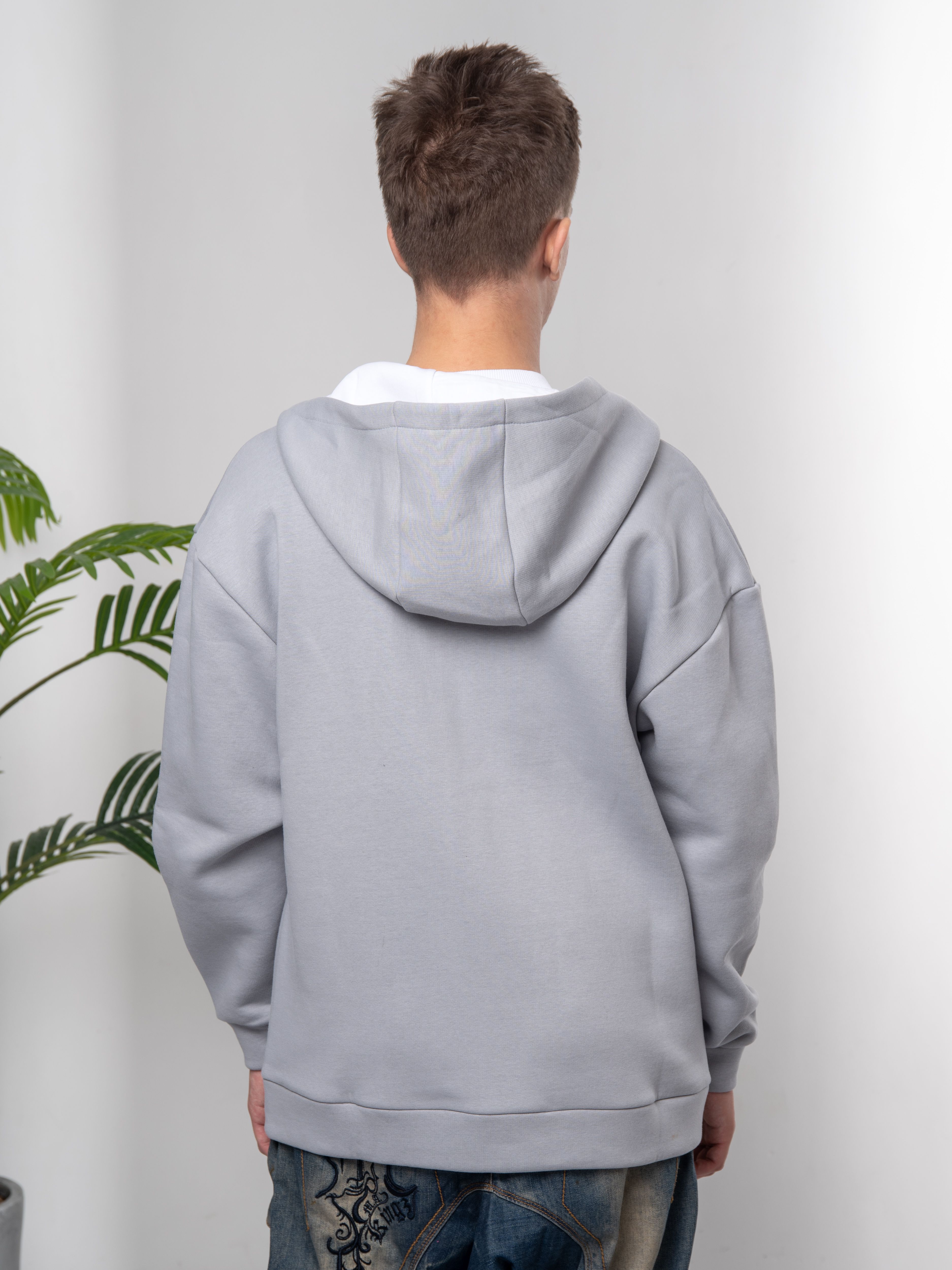 худи на молнии серый